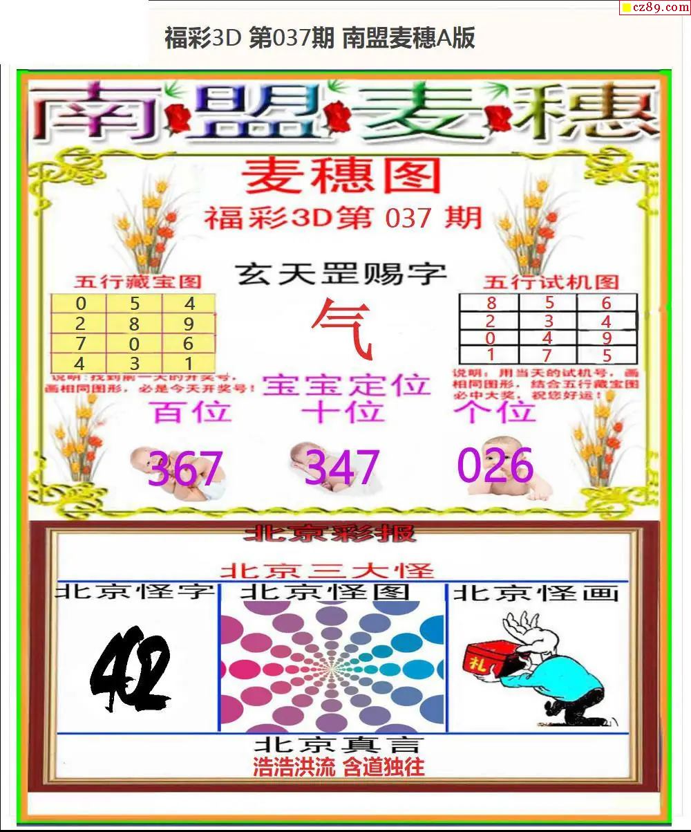 福彩3D2026037期南盟麦穗AB版+南盟扣号AB版-千禧3D试机号金码关注码对应码-3D试机号金码查询今天-3d福彩网