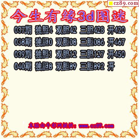 首页 > 福彩3D图谜 > 今生有缘三胆2026040期3d图谜(原创)